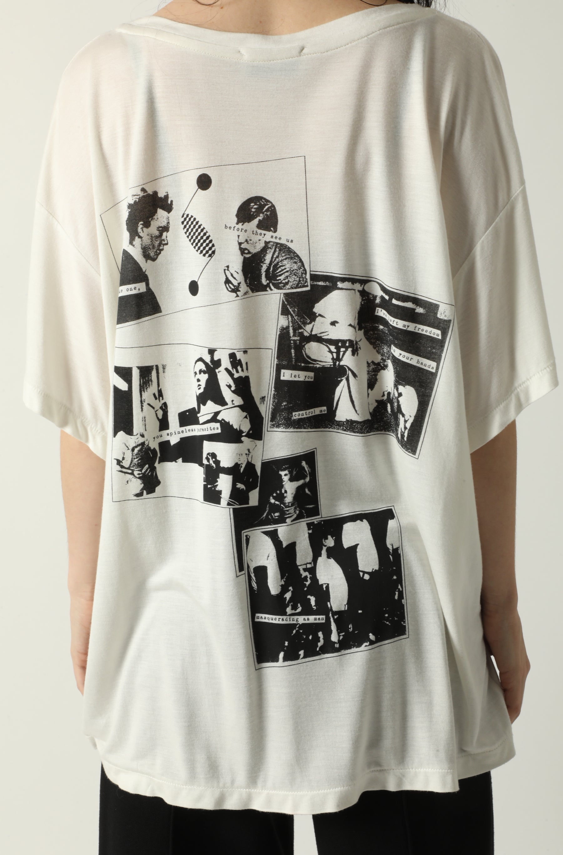 LIGHTWEIGHT SHORT SLEEVED T-SHIRT IN SUPPLE 100% MODAL. SLIGHTLY CROPPED. PRINTED ARTWORK ON FRONT AND BACK. WASH DOWN PROCESS.